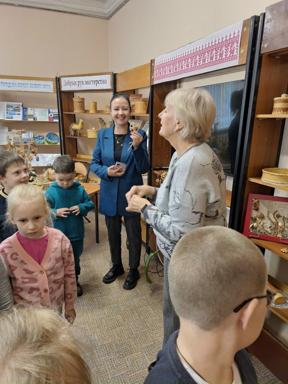 «7 октября группа «Вырастайки» (Минина, 6; воспитатели Богданова С.В., Юдина И.Б., учитель - логопед Емельянова О.В.) посетили выставку Г. Д. Иванковой – мастера по плетению из бересты в читальном зале библиотеке Кемского городского поселения. С Галиной Дмитриевной группа уже давно дружит, она пополнила музей в детском саду (Минина, 6), сделала кибас. Провела мастер-класс, научила делать ложки из бересты, а ещё участвовала на мероприятии и подарила гостям оберёг «Звезда Богородицы» для наших гостей.
