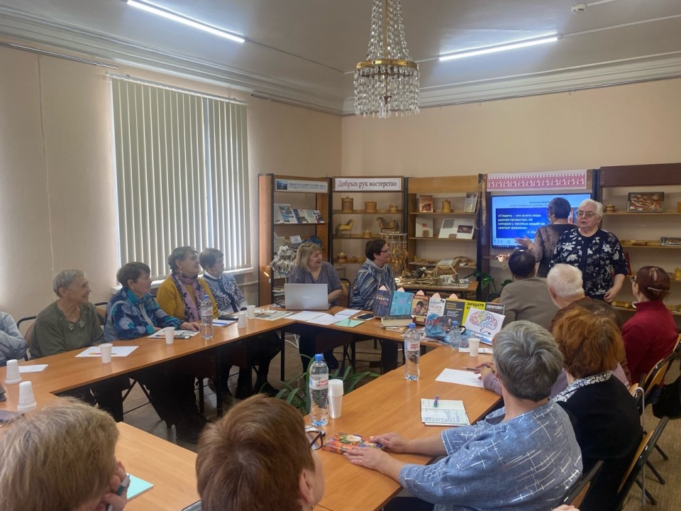 Тема первого заседания была «Наша память – наше богатство». Ухудшение памяти – одна из самых частых жалоб людей старшего возраста. Можно ли сохранить ясный ум и твердую память до самых преклонных лет? Как это сделать, что для этого требуется, рассказала слушателям клуба Валентина Васильевна. Участники встречи прошли шуточный тест «Знакомство», узнали, как развивать мозг с помощью тренировок по сохранению памяти. Ольга Николаевна представила книги и журналы для улучшения памяти и развития мозговой деятельности из фонда библиотеки.