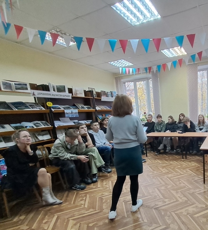 Особым гостем библиотеки стала экскурсовод Кемского районного краеведческого музея И. М. Образова, рассказавшая о главной жемчужине нашего города – Успенском соборе, построенном по принципам пользы, прочности и красоты – основам архитектуры, актуальным и сегодня. Интерес вызвал рассказ о материалах: стены из сосны – крепкой и морозостойкой древесины, а купола из осины, которая со временем становится прочной и приобретает серебристый оттенок. Для покрытия применялся лемех – тонкая черепица из осины, изготовление которой – настоящее искусство.