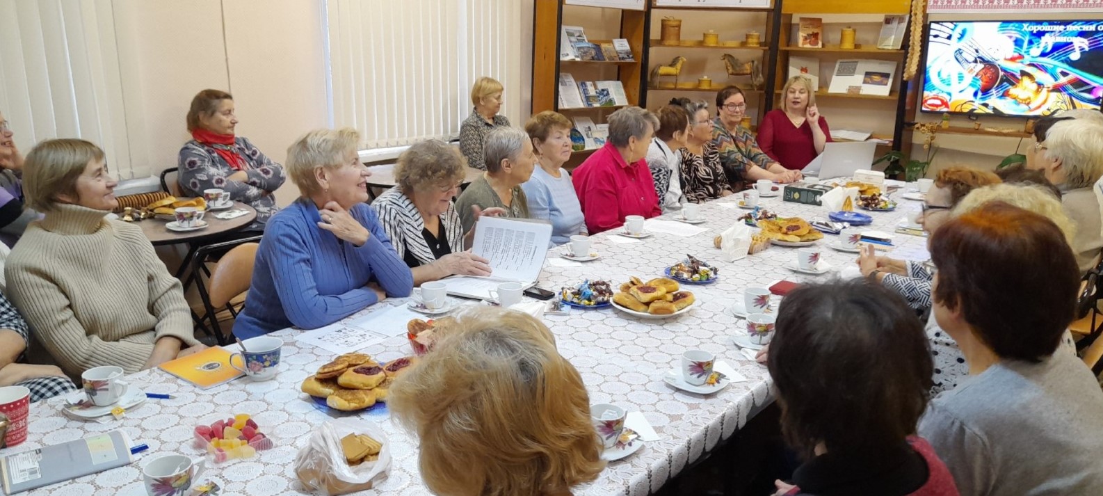 7 ноября в читальном зале библиотеки состоялось очередное занятие клуба «Мудрость жизни, молодость души». Тема заседания была «Хорошие песни о главном». Испокон веков, песня всегда была рядом с человеком и в радости, и в горе. От самого рождения и до самой смерти. Через песню мы знакомимся с историей и жизнью русского народа, ведь на каждый семейный или православный праздник имеются свои традиционные песни, тяжелая работа или посиделки с прялкой – всегда поётся песня, которая поднимет дух или разгонит печаль.