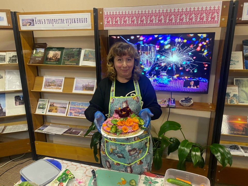 Новогодняя сервировка – это не просто набор блюд, это кульминация праздника, центр притяжения гостей и главное гастрономическое событие года. А разобраться в тонкостях и хитростях по украшению блюд помогла Валентина Акакиевна Савина – директор МБУ Кемская МЦРБ. Когда все слои были собраны воедино, салат «Селёдка под шубой» стал настоящим произведением искусства! Украшения в виде роз в ярких цветах свеклы и моркови создали потрясающий визуальный эффект. Все гости с удовольствием продегустировали кулинарный шедевр.