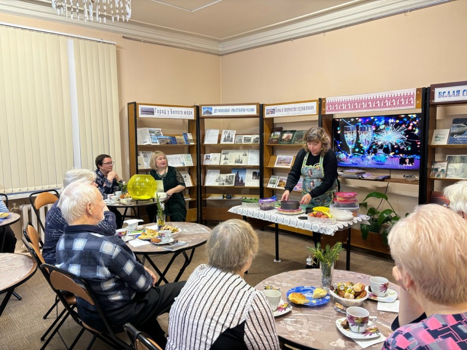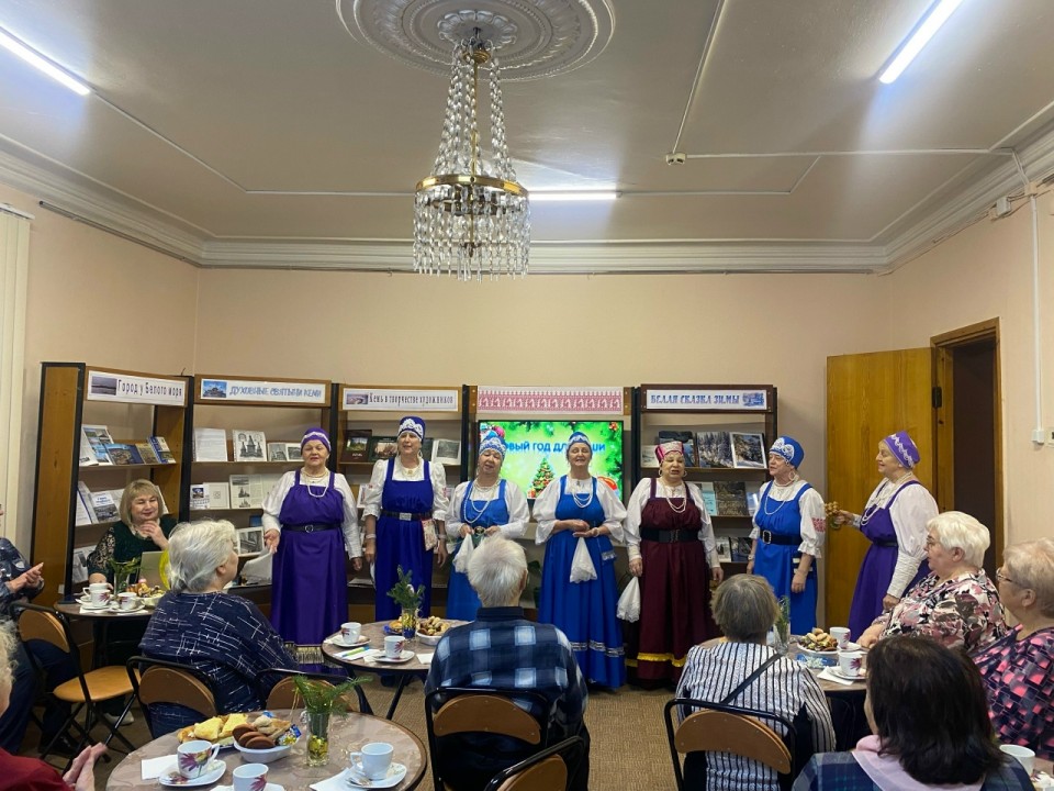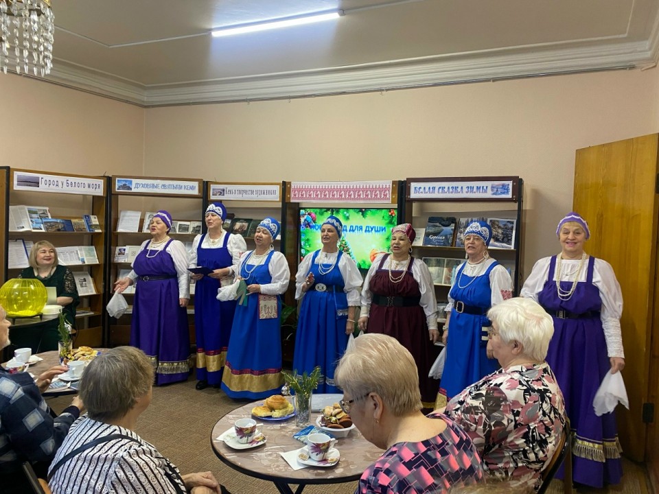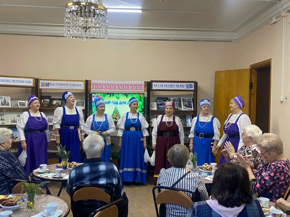 Открылось мероприятие поздравительной открыткой от фольклорного ансамбля «Поморяночки». Прозвучали и новогодние поздравления, и в честь «Николы Зимнего». Ведь - это особо почитаемый в Поморье праздник, ставший традиционным. Николай Чудотворец особенно почитался в Поморье как небесный покровитель мореходов и рыбаков. Выступление перенесло членов клуба на те самые вечерины, которые проходили в больших поморских семьях.