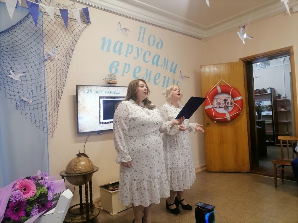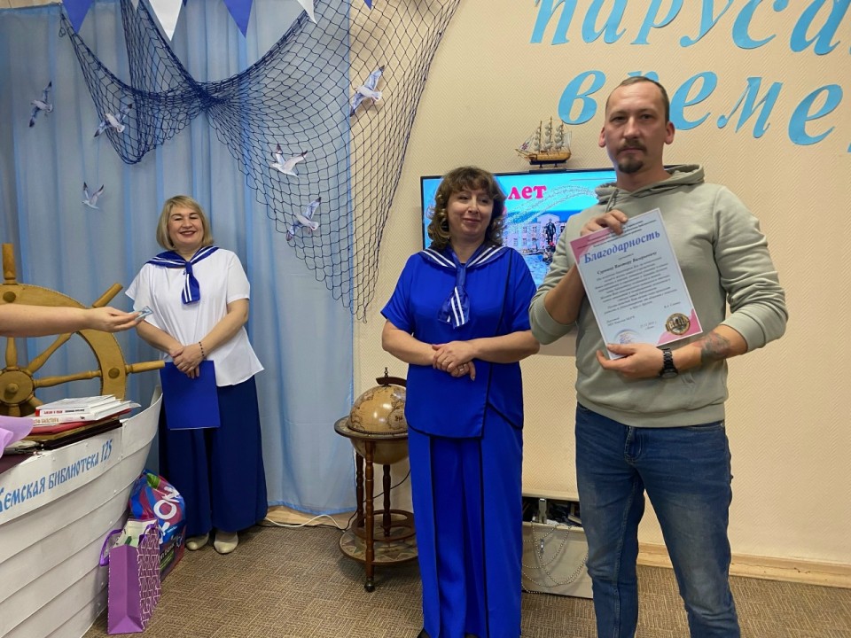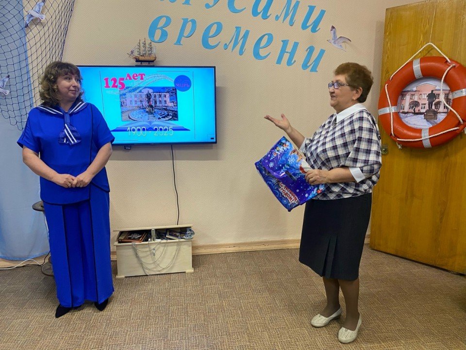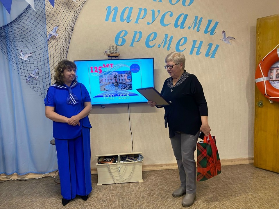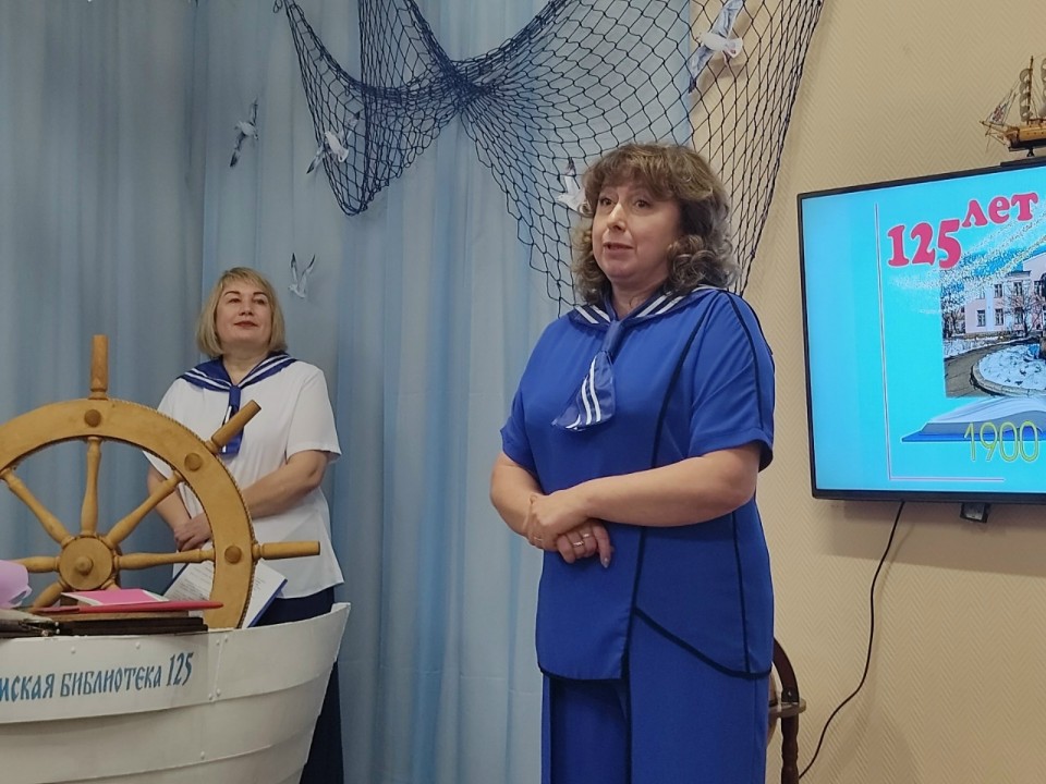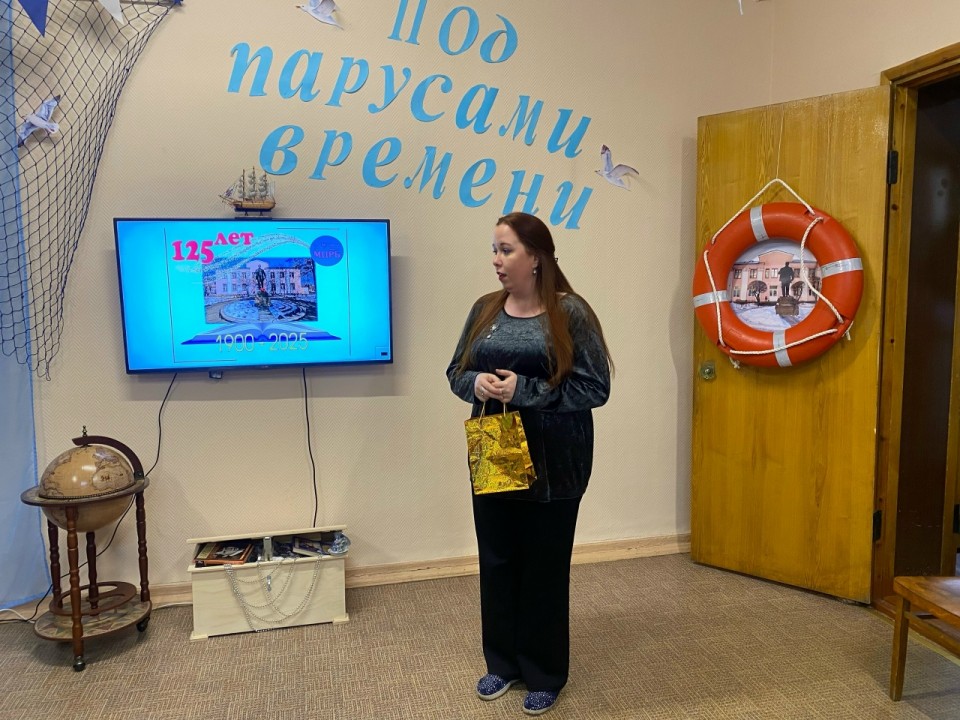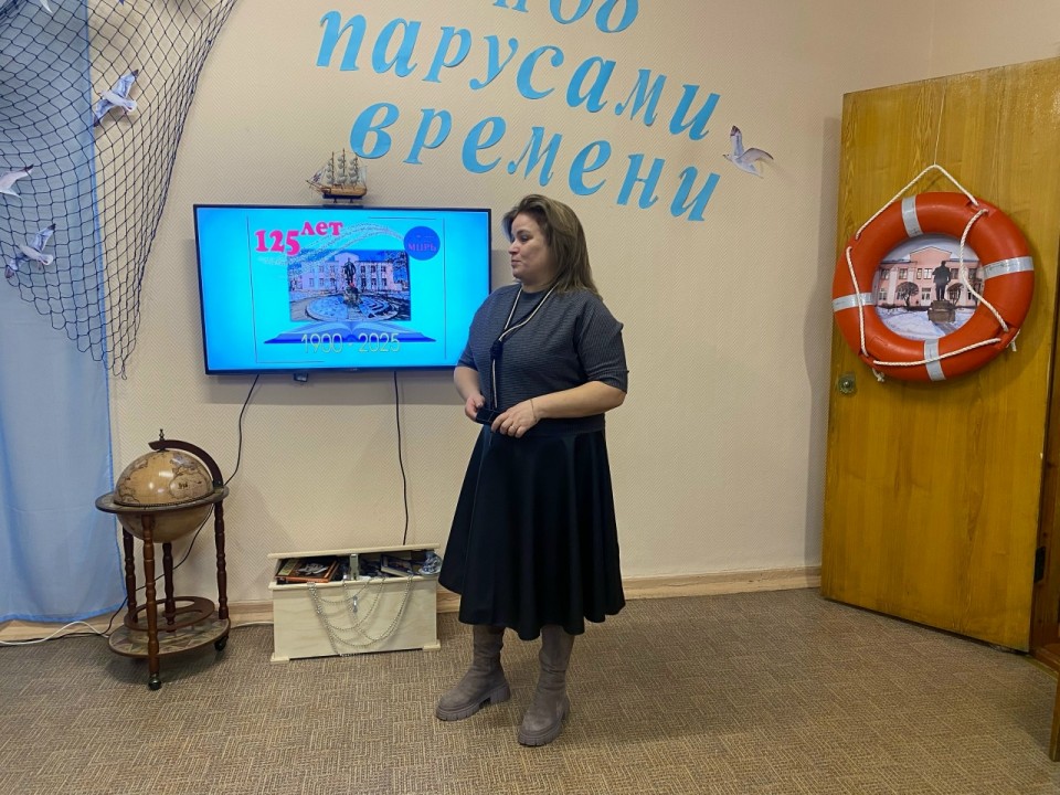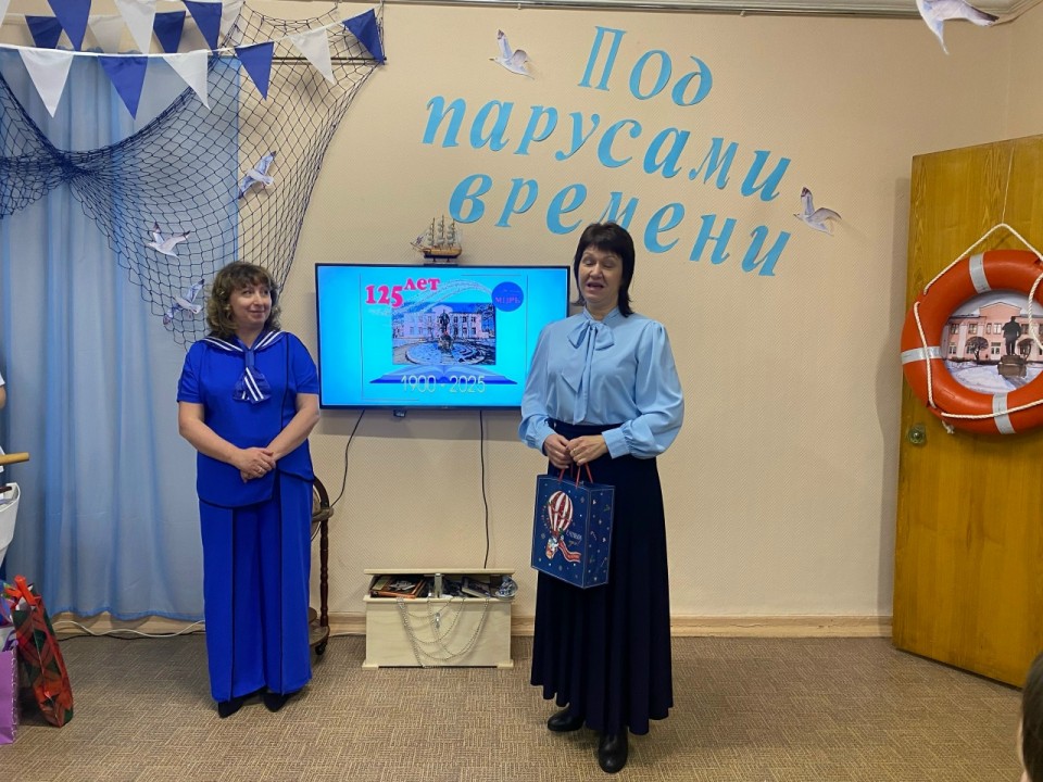 27 декабря библиотека праздновала свой 125-летний юбилей. Эта дата – не просто цифра, а целая эпоха, наполненная любовью к книге, преданностью читателям и неустанным служением просвещению. В свой знаменательный день библиотека распахнула двери для всех, кто ценит знание, слово и культуру. Уже с порога гостей встречали празднично украшенные фотозоны, а морской стиль оформления задал тон всему вечеру-путешествию «Под парусами времени».