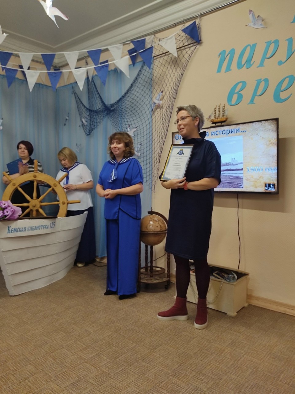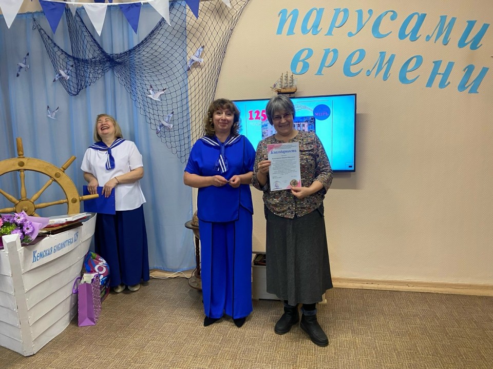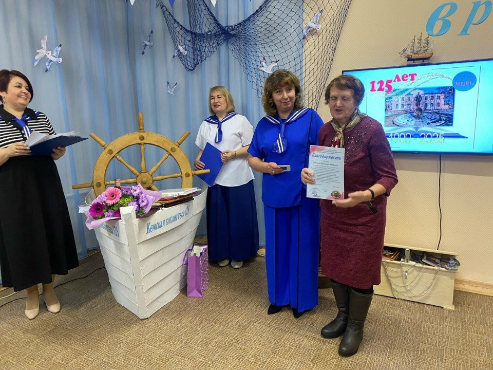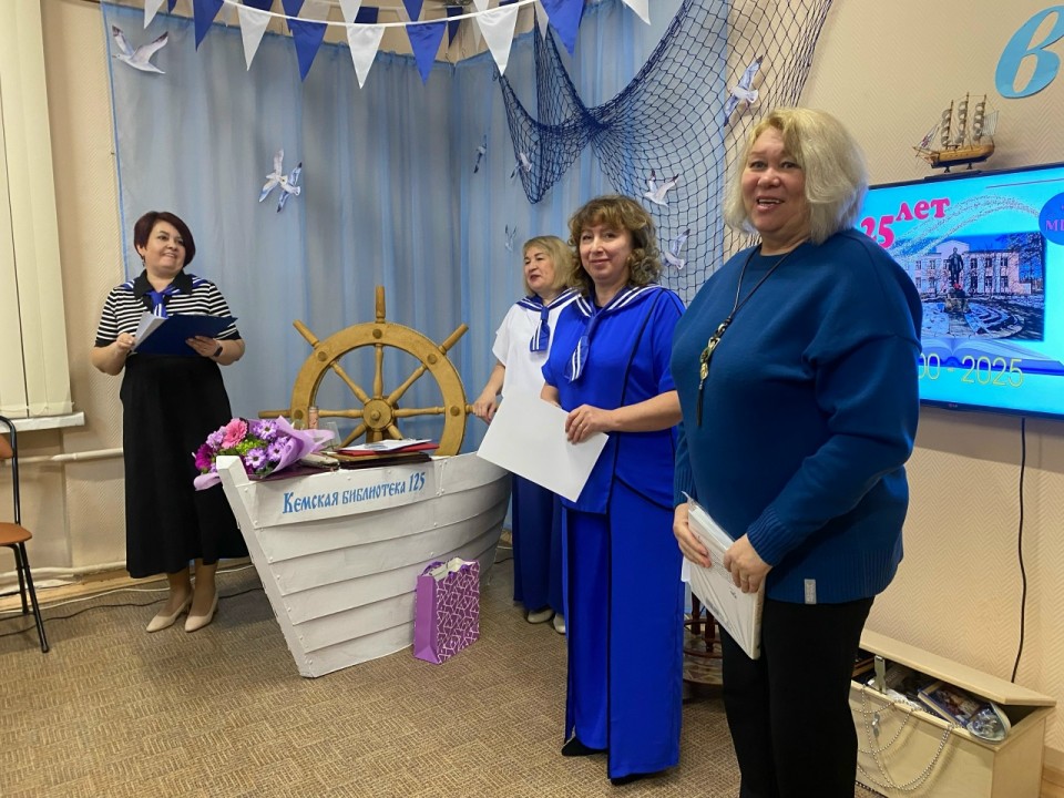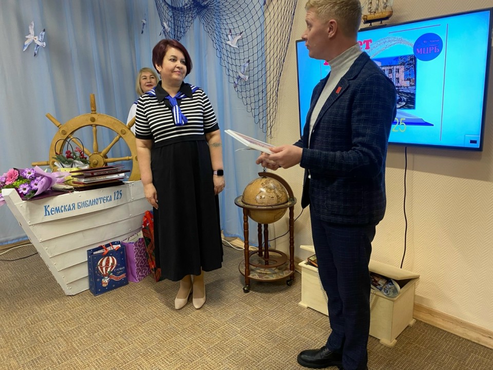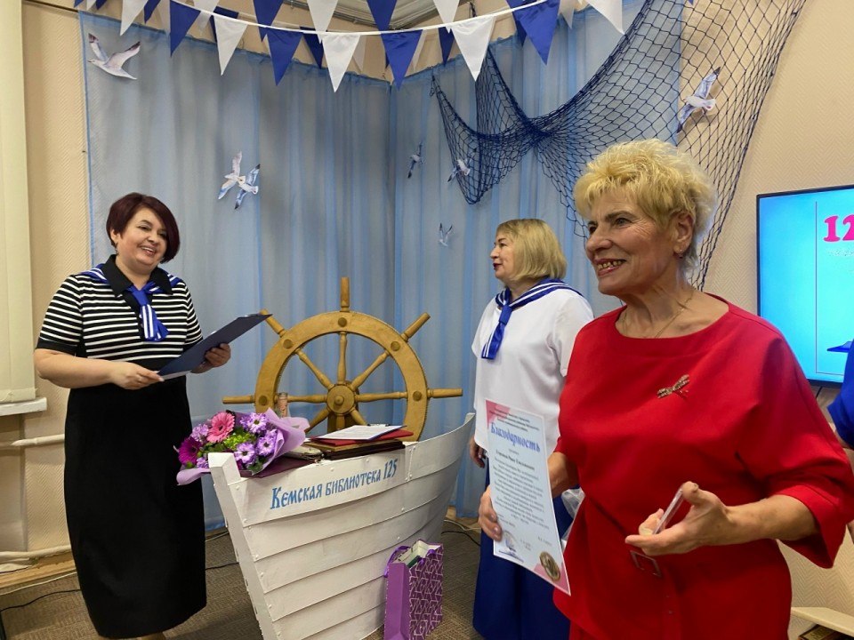 Пройдя 125-летний путь, библиотека с достоинством идёт в ногу со временем. Гостям показали фильм о её современной работе, а трогательное музыкальное выступление коллектива сотрудников стало одним из самых ярких моментов вечера. Директор МБУ «Кемская МЦРБ» Валентина Акакиевна Савина в своей речи подчеркнула, что главное богатство библиотеки – это её преданные сотрудники, каждого из которых отметили в этот праздничный день.