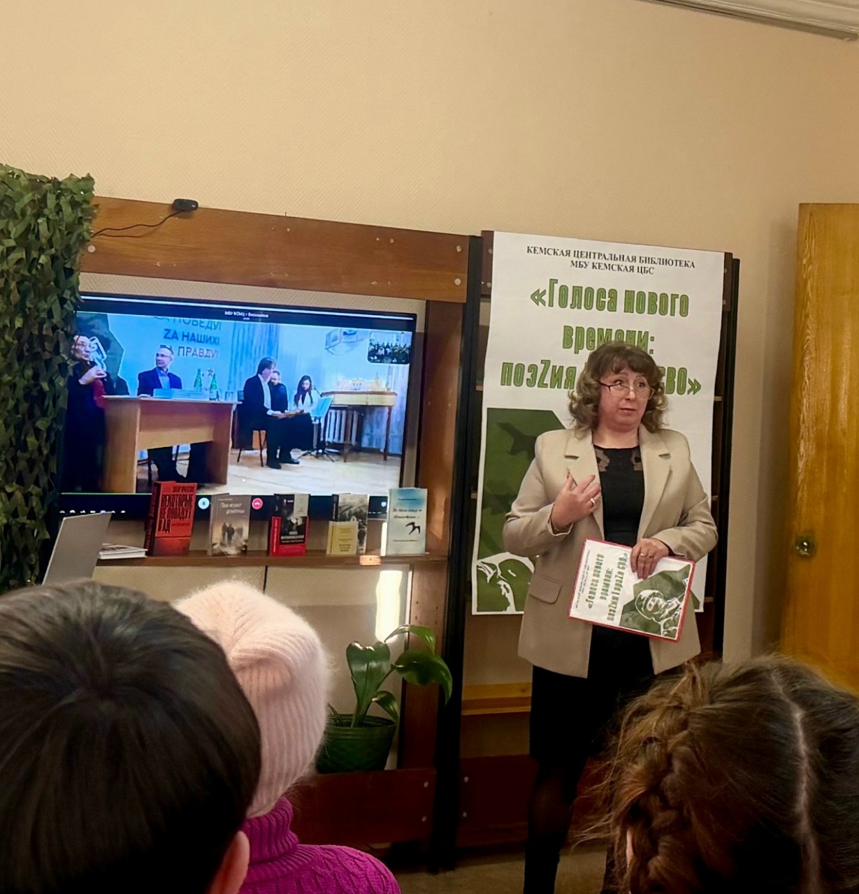 Душевную атмосферу встречи продолжила ведущая мероприятия, директор библиотеки Валентина Савина. Она подробно представила кемской аудитории сборник «СВОим пером» и зачитала отрывки из произведений.