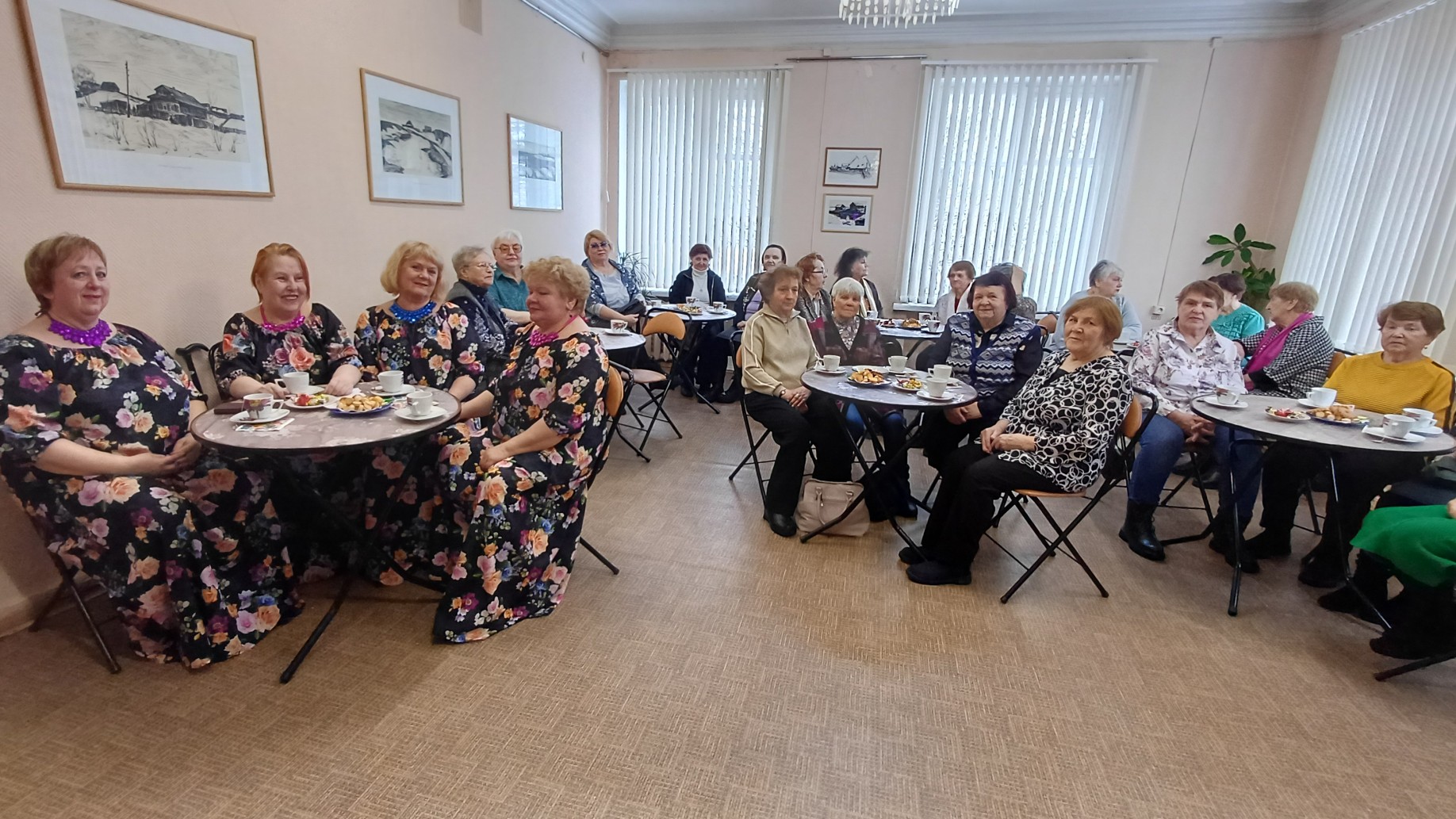 Обычно такие встречи в клубе мы завершаем традиционным чаепитием, во время которого собравшиеся могут пообщаться, поделиться добрыми и тёплыми пожеланиями в канун женского праздника и, конечно, сделать совместное фото на память.